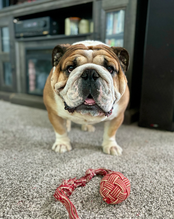 Raised & loved in our home from the day she was born so we could do our part to carry on the outstanding standard of the English Bulldog breed, Delilah is a very active girl who thoroughly enjoys running and jumping her way across the outdoors with her humans where she loves to spend her days.